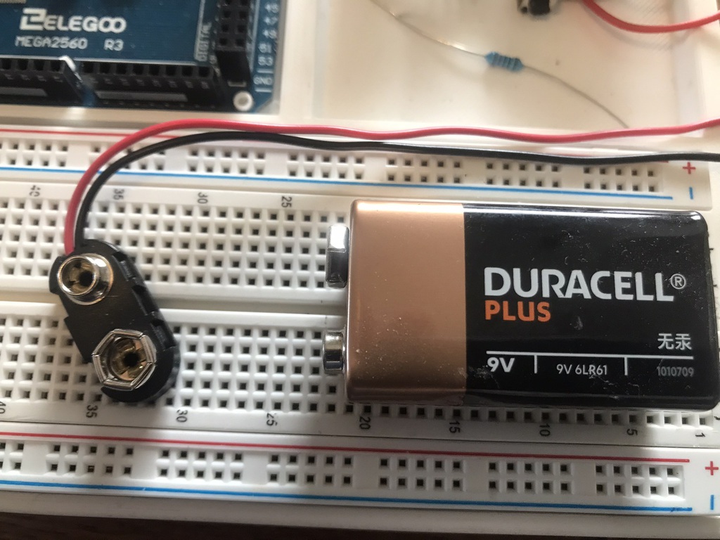 1: Connect the 5V+ on the mega board to the + red rail on the breadboard, then connect the GND on the mega board to the - blue rail on the breadboard.