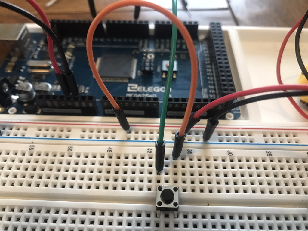 3. Connect one terminal of the switch to digital pin 2 of the Arduino Mega. Connet the other terminal to 5V+ on the